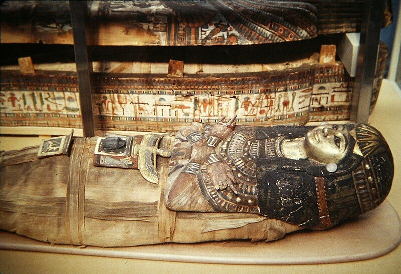 Egypt keeps tugging you back. Human mummies rest beside animal mummies, a cross-section of belief and biology. Linen, resin, and the calculation that the body must endure if the person is to go on. Science meets hope on a cedar board.