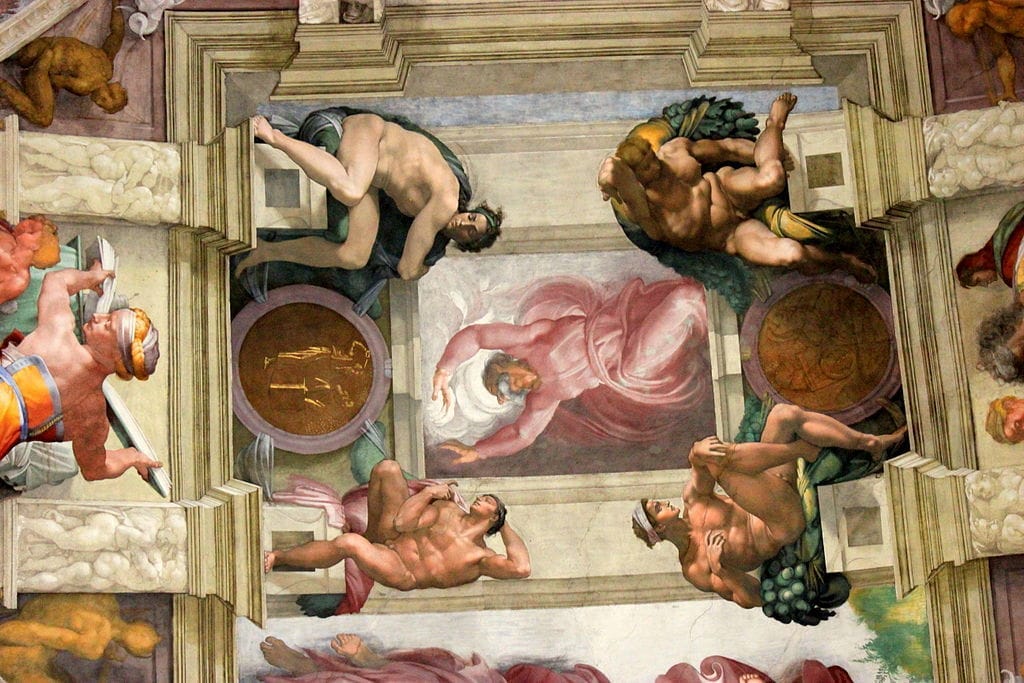 The work was agony. His body twisted in unnatural positions, his hands cramped, and his eyesight suffered. He slept little and ate less. But he refused to stop. Over four years, every inch of the ceiling became a battlefield of physical pain and artistic triumph. He painted the ignudi—athletic nude figures whose purpose remains debated. He framed his biblical narratives with fictive architectural elements, creating the illusion of a three-dimensional space. His Creation of Adam, with God’s outstretched hand nearly touching Adam’s, would become one of the most iconic images in history.