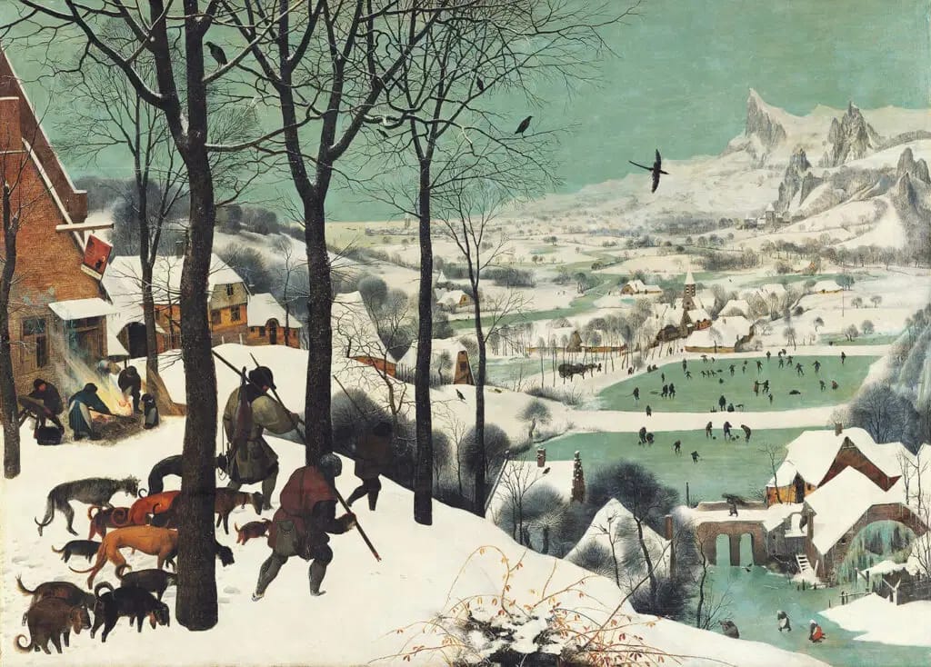 Another iconic piece, The Hunters in the Snow, offers a stark contrast. This wintry scene captures a group of weary hunters returning to their village against a vast, frozen landscape. The painting’s muted colors and sharp details create a chilling atmosphere, reminding us of the hardships of winter life in the 16th century. Bruegel’s genius lies in how he balances human struggle with the breathtaking beauty of nature.