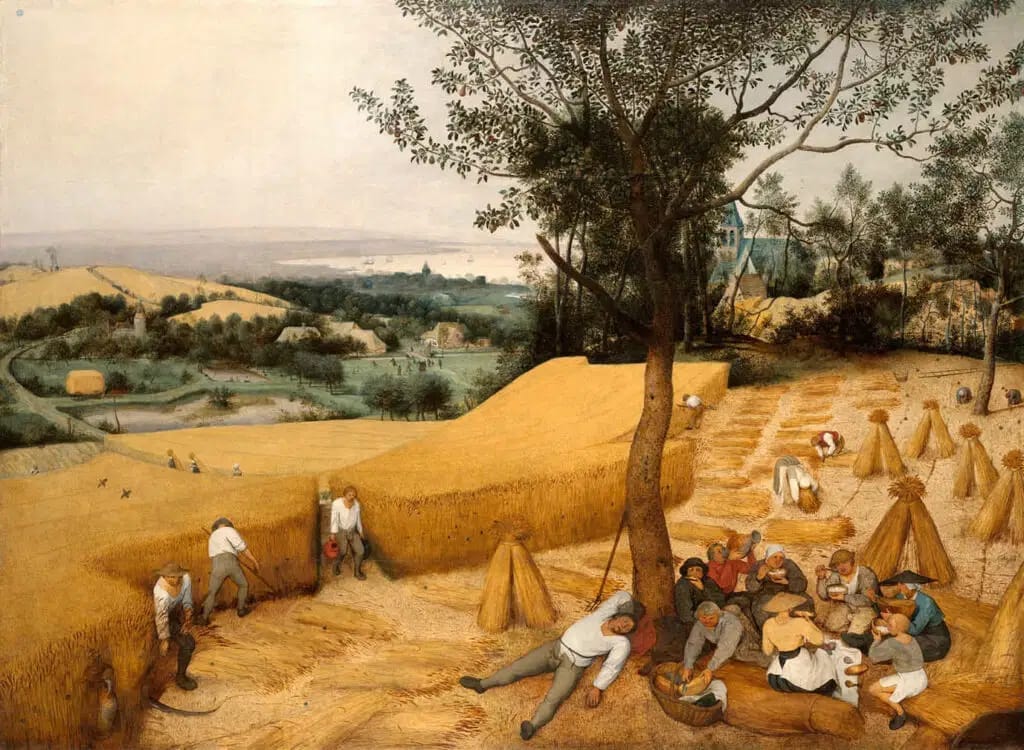 Bruegel’s fascination with seasonal cycles shines in The Harvesters. This masterpiece offers a vivid depiction of summer toil, with peasants laboring under the golden sun. Yet amid the hard work, there’s a sense of balance—some workers rest, while others feast under the shade of a tree. Bruegel’s nuanced approach to rural life reveals his deep empathy for the common folk.