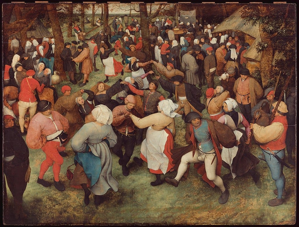 In The Wedding Dance, Bruegel immerses viewers in a rustic celebration where villagers twirl and embrace with reckless abandon. The painting’s earthy tones and exaggerated gestures capture the raw, unfiltered joy of the moment. It’s an honest depiction of peasant life, showing both its pleasures and excesses without judgment.