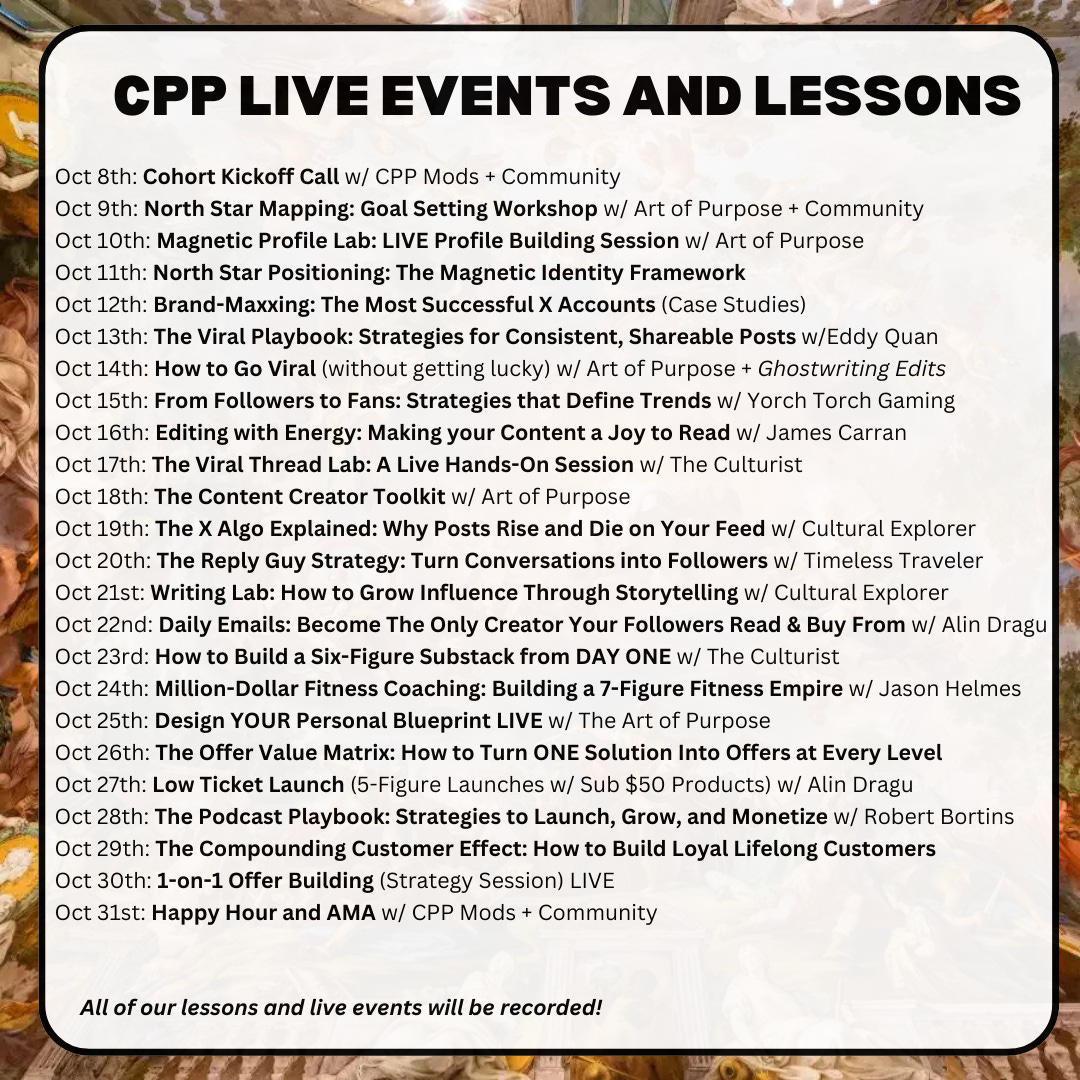 Why share this? Because the next CPP cohort just opened, which is to start October 8th. If you’re serious about growing on X, monetizing your ideas, or building something meaningful, this is the room you want to be in.