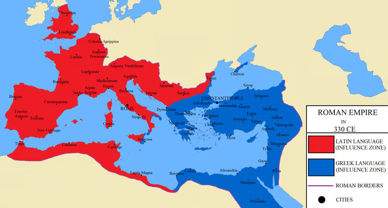 Let us start from the context and why we talk about “West” and “East”; the division of the Roman Empire and the establishment of Constantinople as a new imperial capital were responses to several interconnected political, economic, and military challenges.
