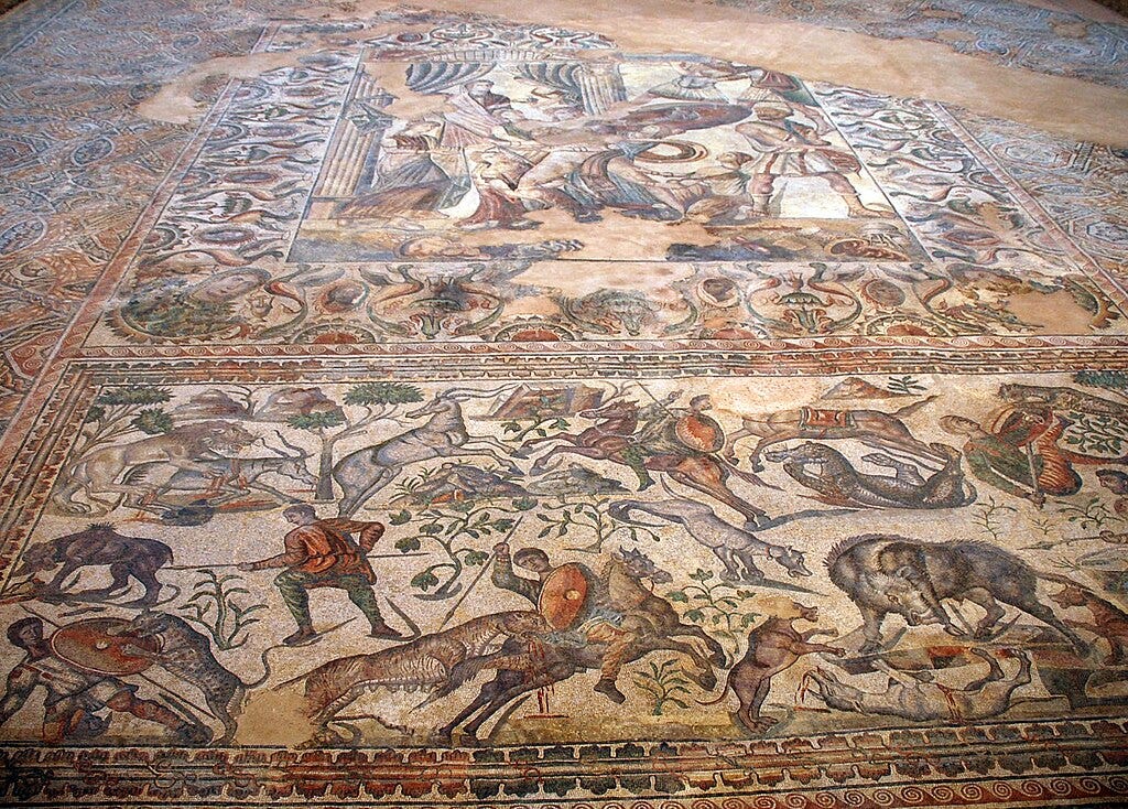 Great Hunt mosaic at Villa Romana del Casale. Public Domain.