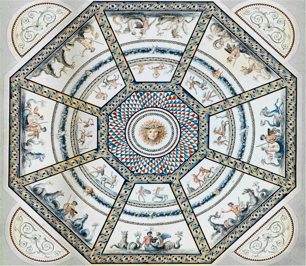 Art: Roman floor mosaic from the Baths of Ocriculum by Giussippe and Franciso Panini