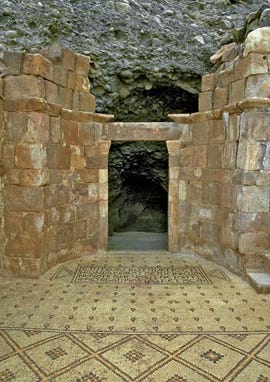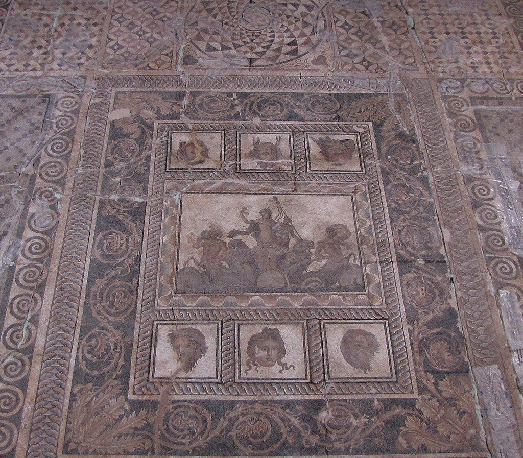 Mosaic at Dion. Photo by Juergen-Olymp - Own work, CC BY-SA 4.0, Wikimedia Commons.