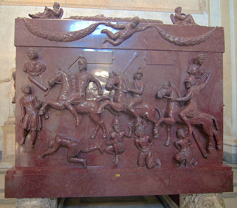 Twenty-seventh is the Sarcophagus of Saint Helena, Constantine’s mother, carved from imperial porphyry. Military scenes on a woman’s tomb hint it was reused. Her role in marking Christ’s tomb gives the red stone a sharper edge.