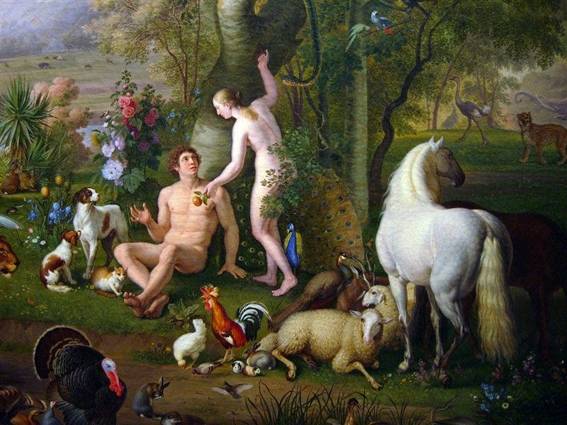 Twenty-third is Wenzel Peter’s Adam and Eve in Eden. A devout menagerie. Over two hundred animals painted with near-photographic care, living in harmony with two modest humans. It’s a theology of peace disguised as a nature painting.