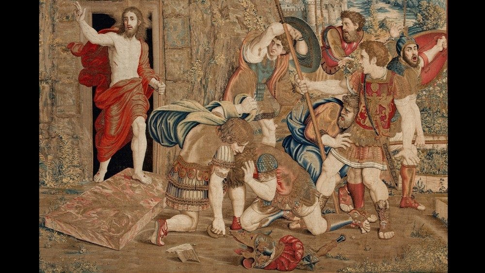 Twenty-ninth is the Resurrection of Christ tapestry in the Gallery of Tapestries. Flemish work after Raphael’s designs, once hung in the Sistine. Walk and watch the eyes of Christ follow you. It’s a simple device with a clear message.