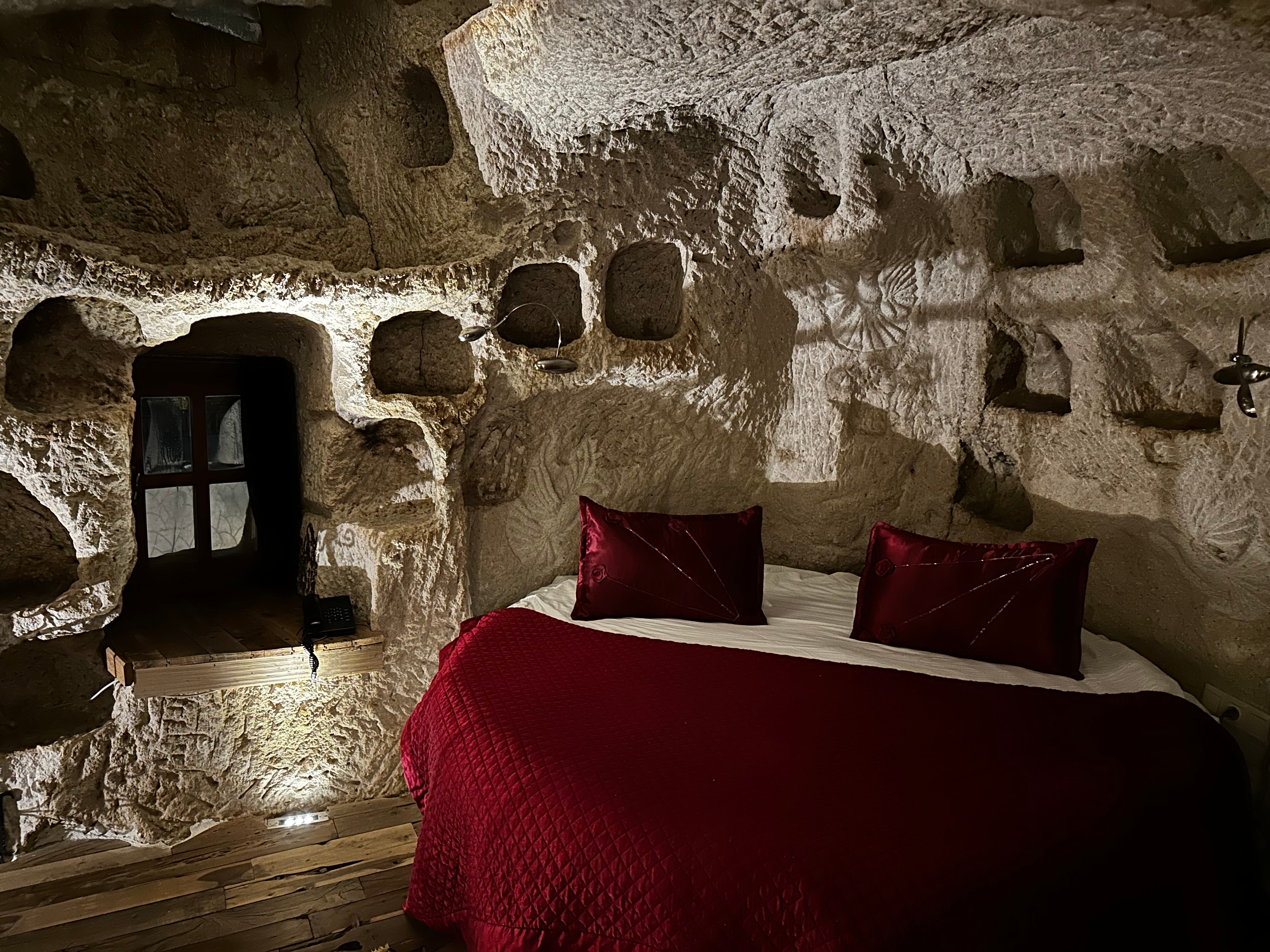 I checked into a cave hotel and stayed there until January 4th. The moment I stepped inside, something shifted. Outside, winter air cut through everything. Inside the cave, the temperature was perfect. Not cold. A little warm but cozy. Calm. After that long journey, it felt unreal. No hum of heating systems. No artificial blast of air. Just stone doing what it has done for centuries.